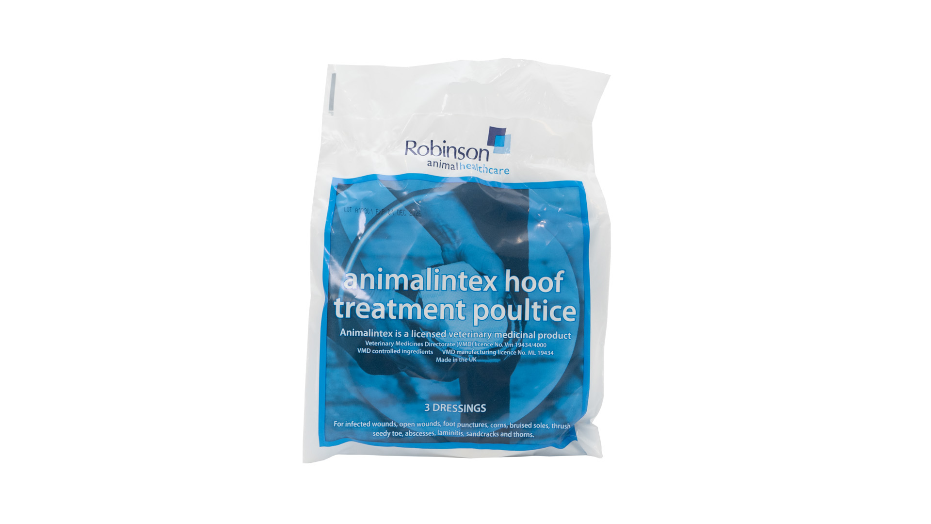 The dressing is supplied pre-cut to shape for economy and convenience. It contains Boric Acid BP, an active ingredient that promotes effective healing, plus tragacanth, a natural poulticing agent that draws infection out of the wound. Animalintex® is made in Robinson Healthcares UK manufacturing facility. Every batch has to be signed off by a Qualified Person to Veterinary Medical Directorate requirements to ensure consistent dosing and quality of ingredients.