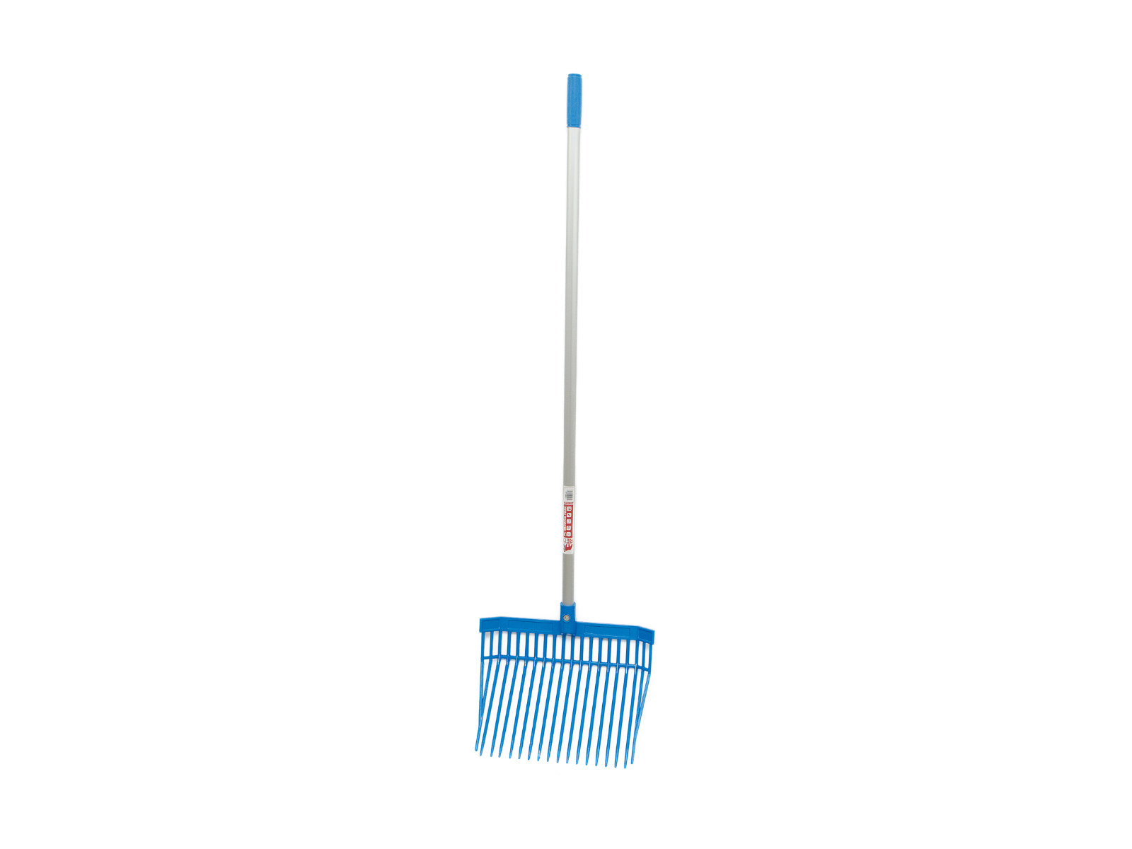 A super lightweight shavings fork with strong polycarbonate tines with an aluminium handle ideal for shavings bedding.